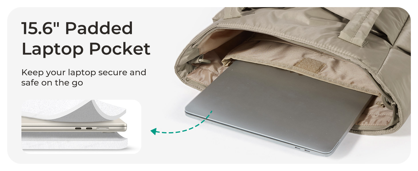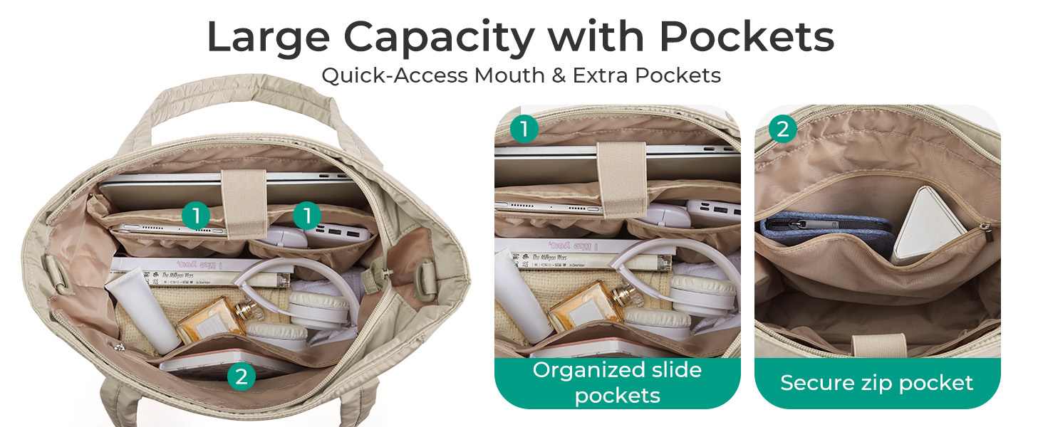• Compact Size: Standard Size: 16.1''L x 6.1''Wx 12.2''H. Slim Size - 13.2''L x 5.1''Wx 15.7'H. Capacity 20L. The quilted tote bag suitable daily necessities such as 15.6'' laptops, Umbrella, water cup, power banks, clothes, shoes, etc. The zipper closure design ensures the safety.