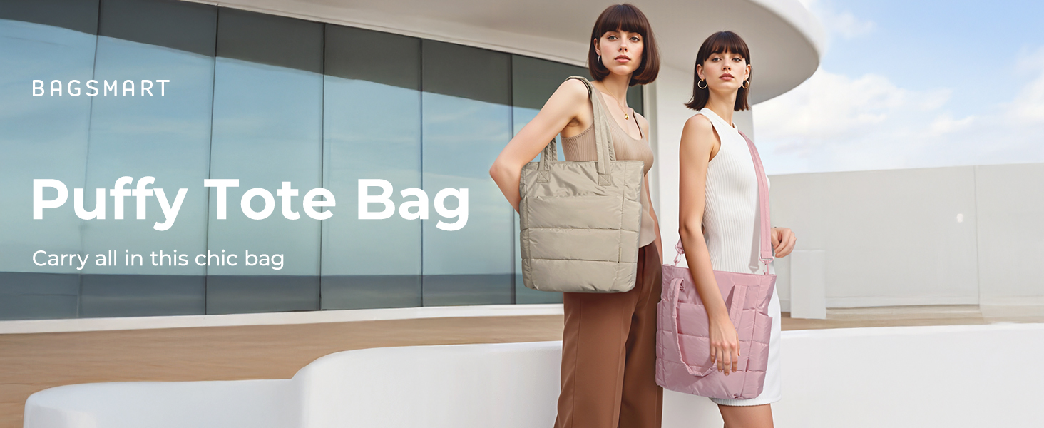 BAGSMART Tote Bag for Women, Lightweight Puffy Tote Bag with Compartments Quilted Shoulder Bag Handbag for Travel, Work, Gym