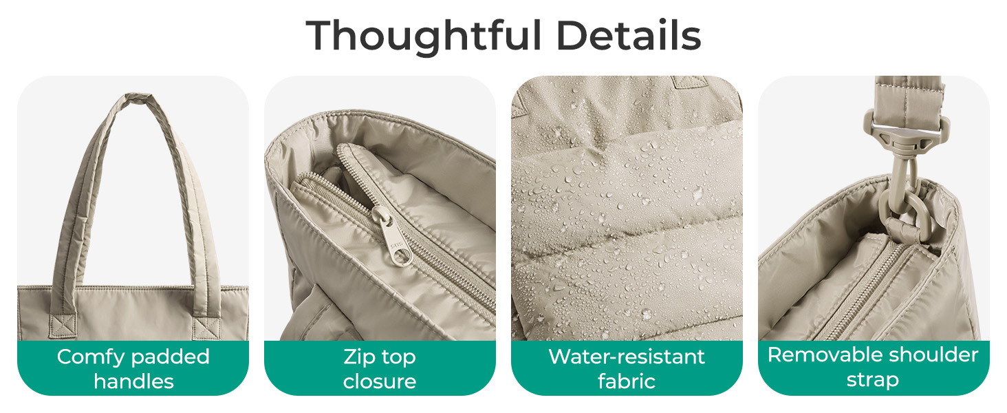 • Puffer and Water-resistant Materials: The surface is made of water-repellent material. If it gets wet, just wipe it clean gently with a clean cloth. Made of durable, soft and light fabric. The cute tote bag is efinitely an ideal gift for yourself, your family, and your friend.