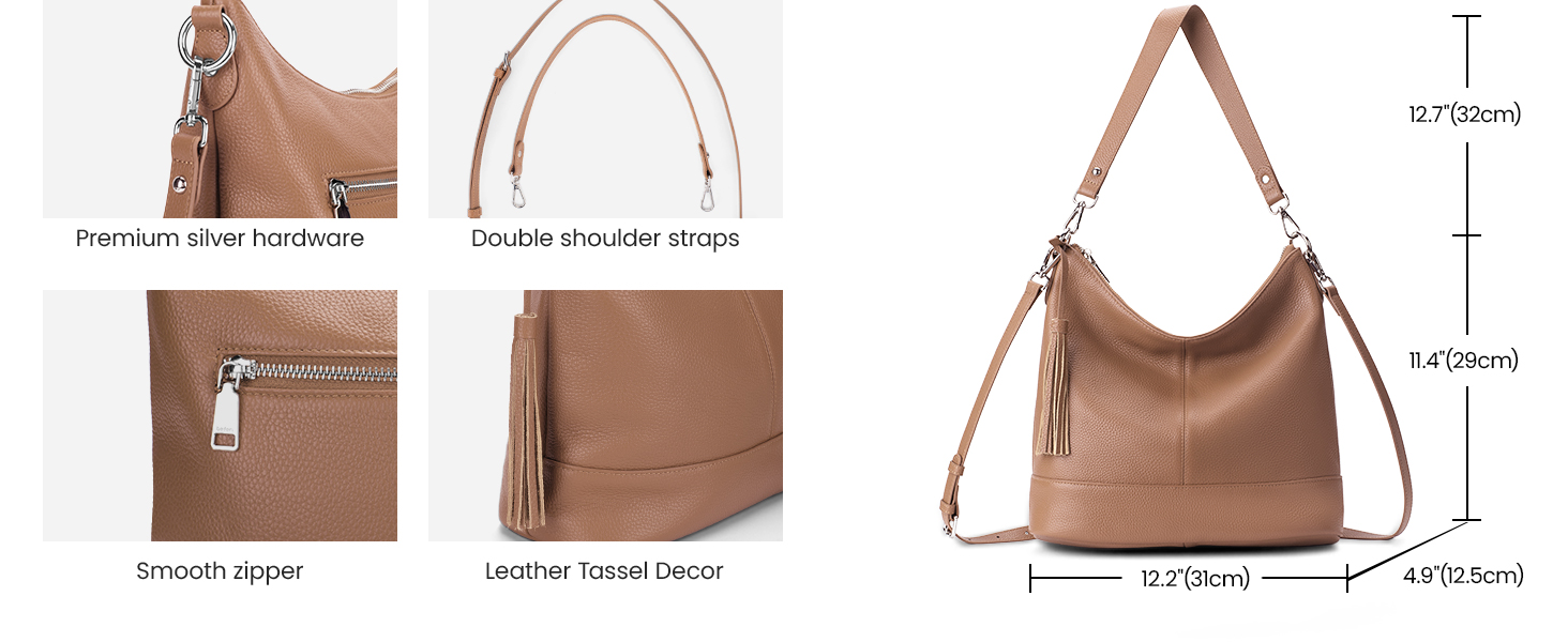 💖Premium Top Grain Leather: Crafted with buttery-soft full-grain cowhide leather, this slouchy hobo bag features elegant fringe detailing. The leather naturally develops a rich patina over time, creating a unique inspired leather purse