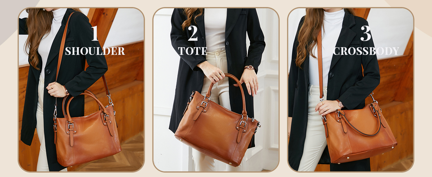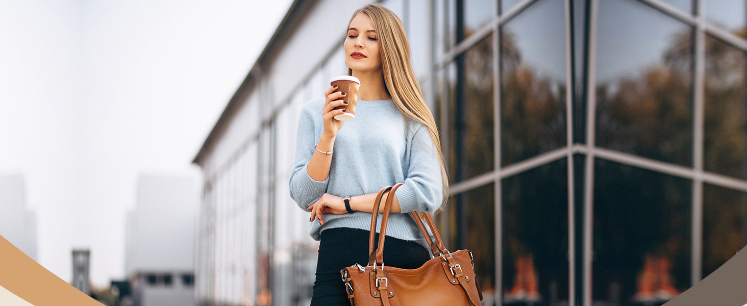 Organized Structure: This leather tote bag features 2 internal main compartments, 1 practical divider zip pocket, 1 small zipper pocket, and 2 small open pockets ideal for storing everyday items. The top zipper guarantees secure storage of your belongings.