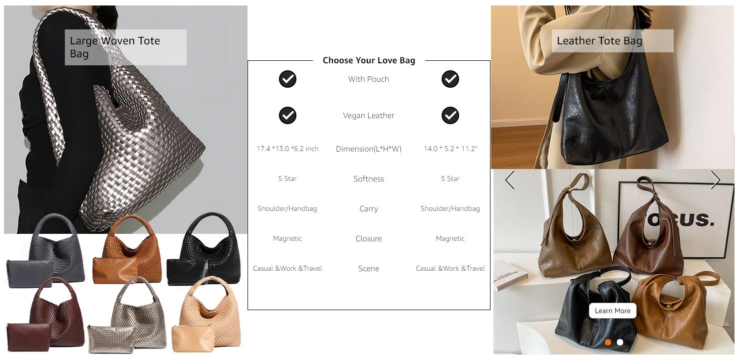 LARGE CAPACITY TOTE BAG FOR WOMEN: Handbag is 17.4 " L* 6.2" W* 13" H, portable height is 11.7 inches(Many larger than others); Clutch: 9.8" L* 4" W * 6.2" H. Can hold 16 inch laptop,sunglasses, newspaper, books, keys, cosmetics, etc., the clutch bag can hold your wallet, cash and mobile phones, the advantages of fully enclosed allow to hold items safely without worrying about loss. With a wide field of vision and quick access, making it easier for you to find what's inside